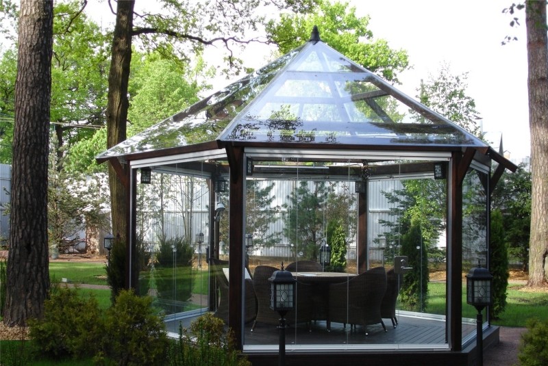 Конструкции зимних садов с применением окон пвх реже применяется на сегодняшний день. Прочность стропил – главная причина этого. Решают ее с помощью металлических усиливающих балок, которые красят под цвет пластикового профиля так, чтобы не нарушать гармонию. Еще одним недостатком пластиковых оконных и дверных профилей является их линейное тепловое расширение, что приводит к тому, что элементы конструкции гуляют, приводя к разгерметизации и даже разрушению. Но металлические балки, к которым жестко привязаны пластиковые конструкции, являются хорошим решением этих проблем.