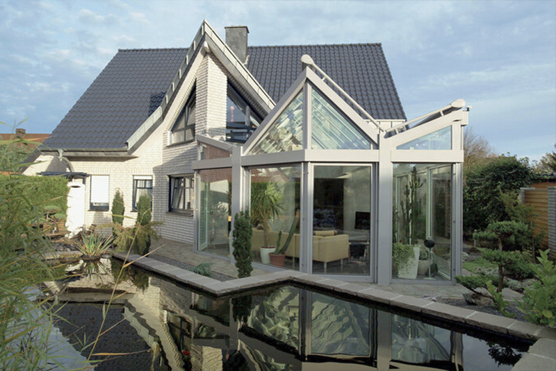 Применение алюминиевых профилей при монтаже зимних садов сейчас очень актуально. Дело в том, что алюминий при нагревании не расширяется и не выделяет в атмосферу вредных веществ, в отличии от пластика, а конструкция любого зимнего сада имеет большую площадь остекление ( от 30 м^2), что усиливает проблему. Стропила изготовить из пластиковых профилей невозможно, так как они прогнутся. По тепловым характеристикам современные алюминиевые профили уступают пластиковым, но благодаря технологии терморазрыва ( металл разделен композитной вставкой) и применению технологичных стеклопакетов их сопротивление теплопередаче соответствует техническому заданию, предъявляемому для данного вида работ.